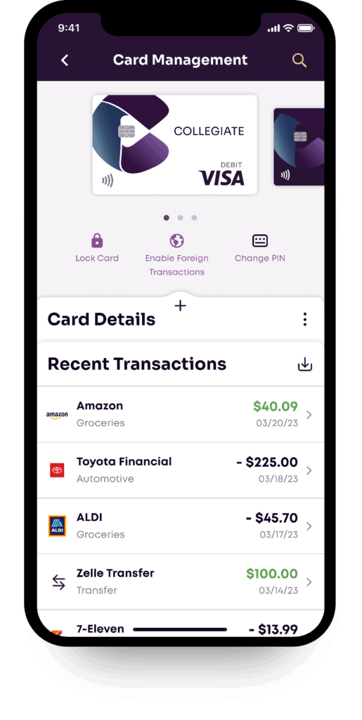 We’ve got you. Collegiate offers live support through phone—plus helpful tools right in the app. Whether you’re sorting out a transaction or just have questions, we’re here to help.Talk to a person: